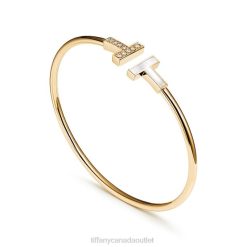 Tiffany Wire Bracelet Unisex 0J0F1186 Jewelry in Yellow Gold with Mother-of-pearl and Diamonds