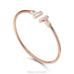 Tiffany Wire Bracelet Unisex 0J0F1042 Jewelry in Rose Gold with Diamonds and Mother-of-pearl