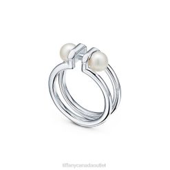 Tiffany Double Milgrain Band Ring Unisex 0J0F1858 Jewelry in Platinum with a Diamond, 4 mm Wide