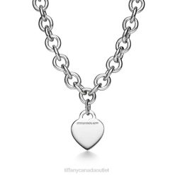 Tiffany Heart Tag Necklace Unisex 0J0F137 Jewelry in Silver with a Diamond, Medium