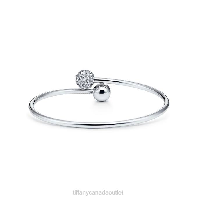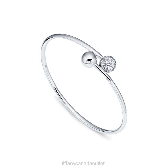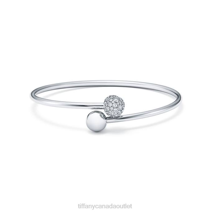 Tiffany HardWear Ball Bypass Bracelet In 18k White Gold With Diamonds, Large.