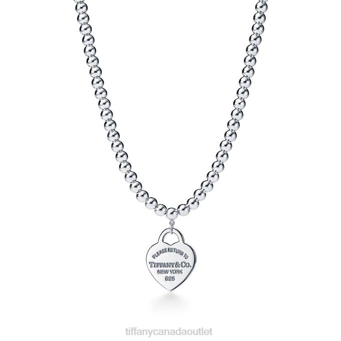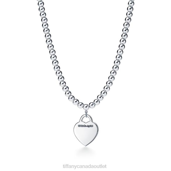 Return To Tiffany Small Heart Tag In Sterling Silver On A Bead Necklace.