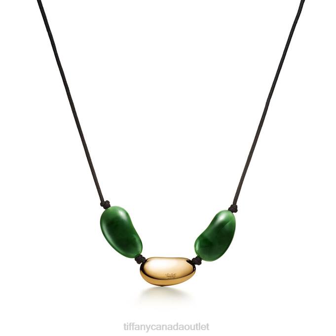 Elsa Peretti Bean Design Necklace In Yellow Gold With Green Jade, 29 X 50 Mm