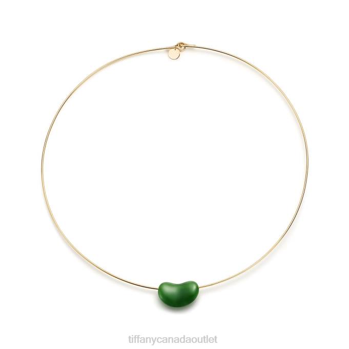 Tiffany Bean design Wire Necklace Unisex 0J0F185 Jewelry in Yellow Gold with Green Jade, 20 mm