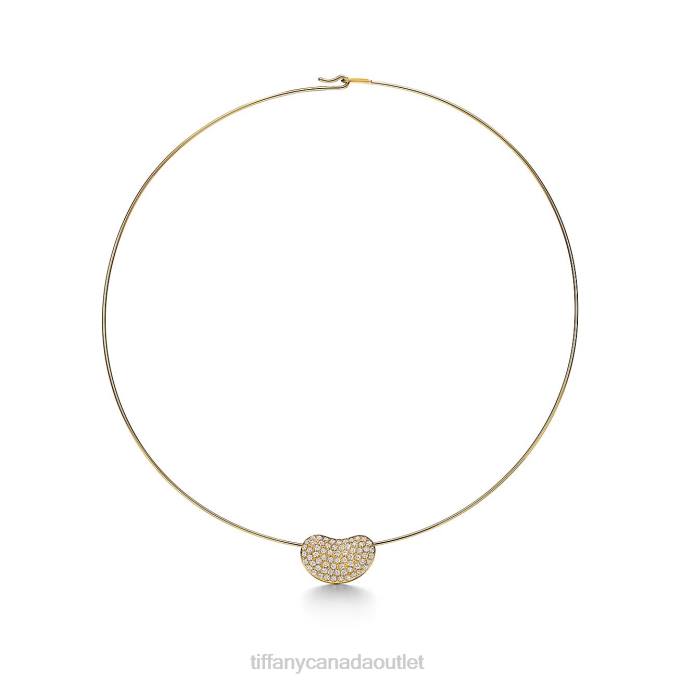 Tiffany Bean design Wire Necklace Unisex 0J0F244 Jewelry in Gold with Pave Diamonds, 20 mm