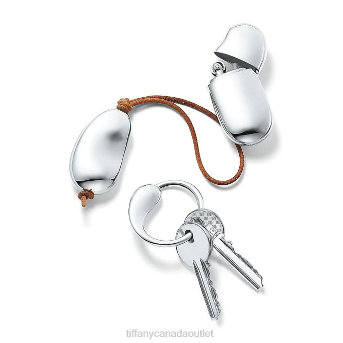 Elsa Peretti Bean Key Ring In Sterling Silver With Leather.