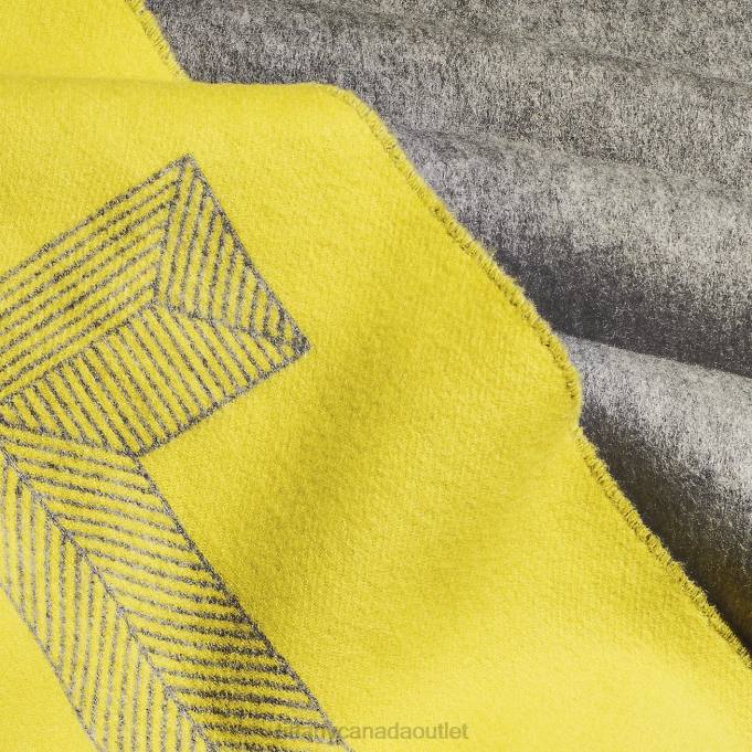 Color Block Blanket In Citrine Yellow And Gray Cashmere And Wool