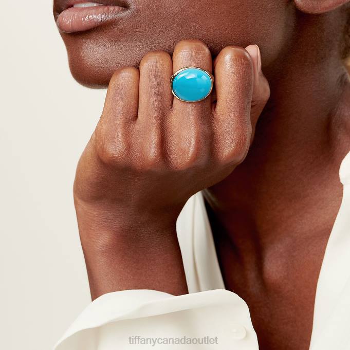 Elsa Peretti Cabochon Ring In 18k Gold With Turquoise, 19 Mm Wide.