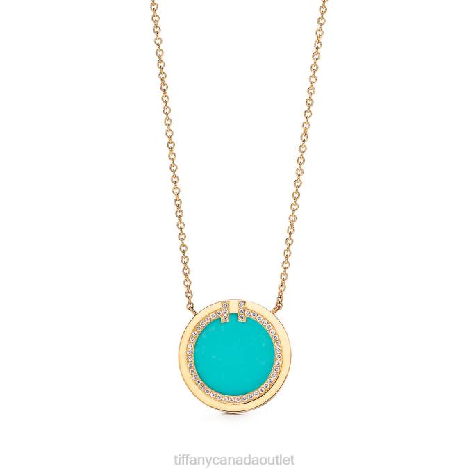 Tiffany T Diamond And Turquoise Circle Pendant In 18k Gold.