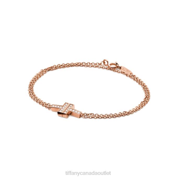 Tiffany T Diamond Double Chain Bracelet In 18k Rose Gold, Medium.