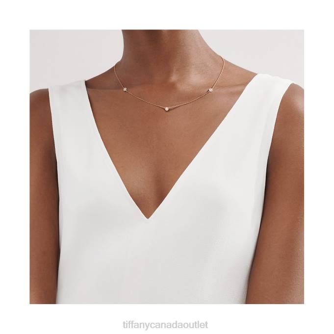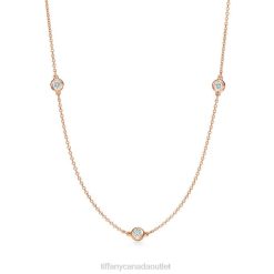 Tiffany Round Diamonds Catch The Light And Make It Dance. Necklace In 18k Rose Gold With Three Round Brilliant Diamonds. 16” Long. Carat Total Weight .21. Original Designs Copyrighted By Elsa Peretti.