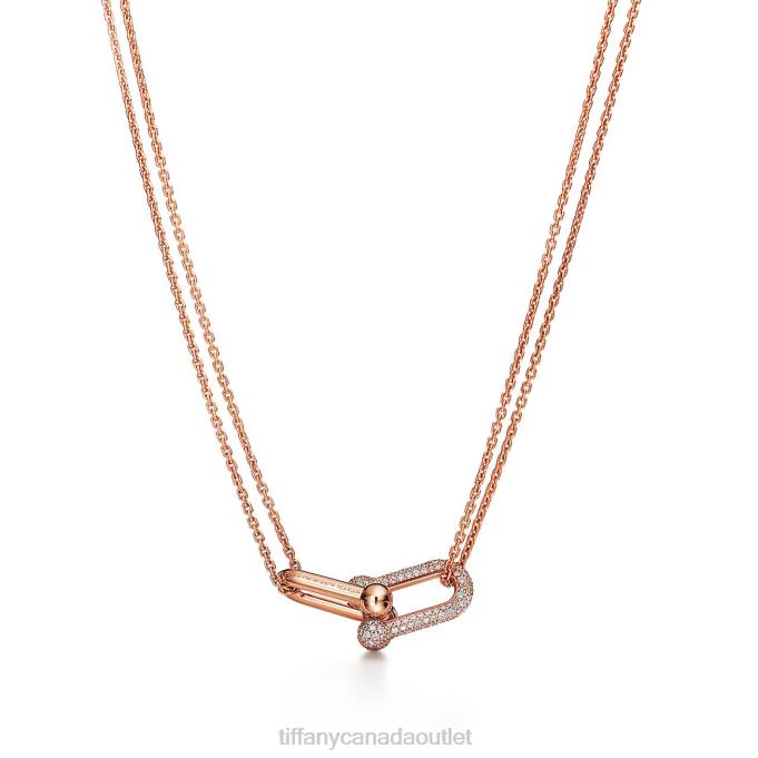 Tiffany Double Link Pendant Unisex 0J0F306 Jewelry in 18k Rose Gold with Pave Diamonds