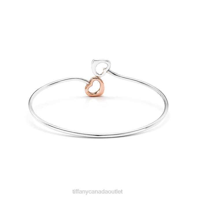 Elsa Peretti Double Open Heart Bangle In Silver And 18k Rose Gold, Medium.