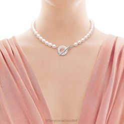 Freshwater Pearl Toggle Necklace In Sterling Silver.
