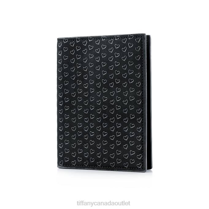 Elsa Peretti Passport Cover In Black Leather With Lacquered Open Hearts.