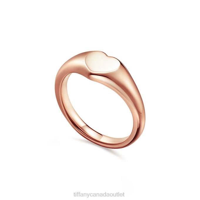 Tiffany & Co. Micro Heart Signet Ring In 18k Rose Gold, 6.45 Mm Wide.