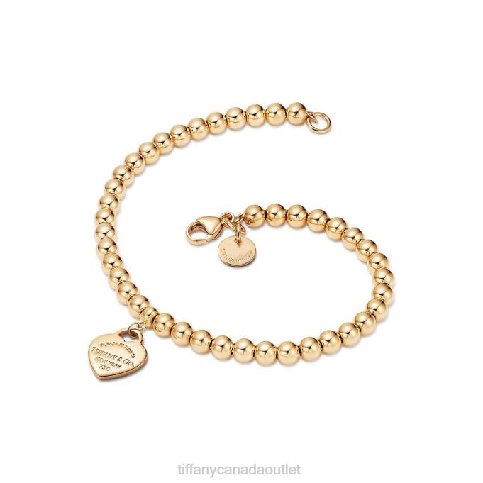 Return To Tiffany Mini Heart Tag On A Bead Bracelet In 18k Gold, Medium.