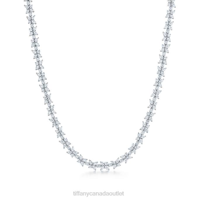 Tiffany Victoria Mixed Cluster Necklace In Platinum With Diamonds.