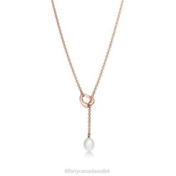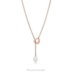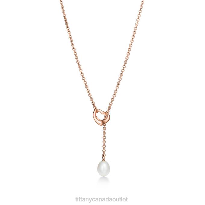 Elsa Peretti Open Heart Lariat In 18k Rose Gold With A Freshwater Pearl.