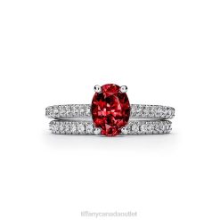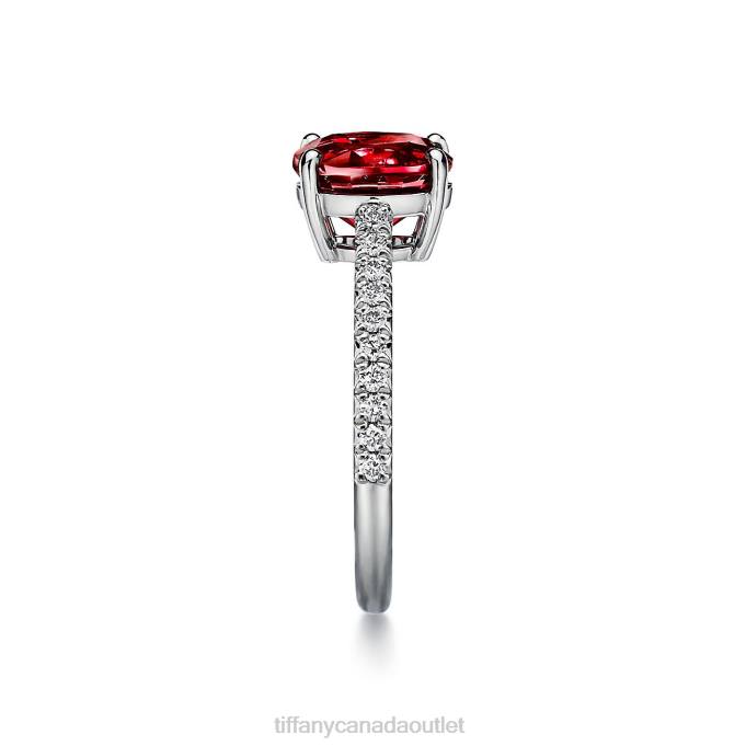 Tiffany Oval Ruby Ring Unisex 0J0F1593 Jewelry in Platinum with Pave Diamonds