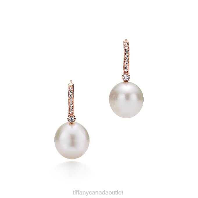 Earrings In 18k Rose Gold With South Sea Cultured Pearls And Diamonds.