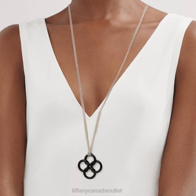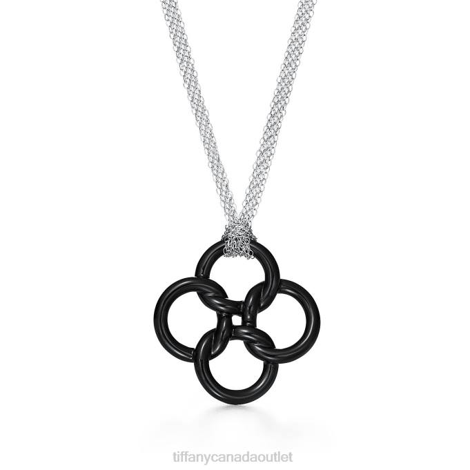 Elsa Peretti Quadrifoglio Pendant Of Black Jade On A Sterling Silver Mesh Chai