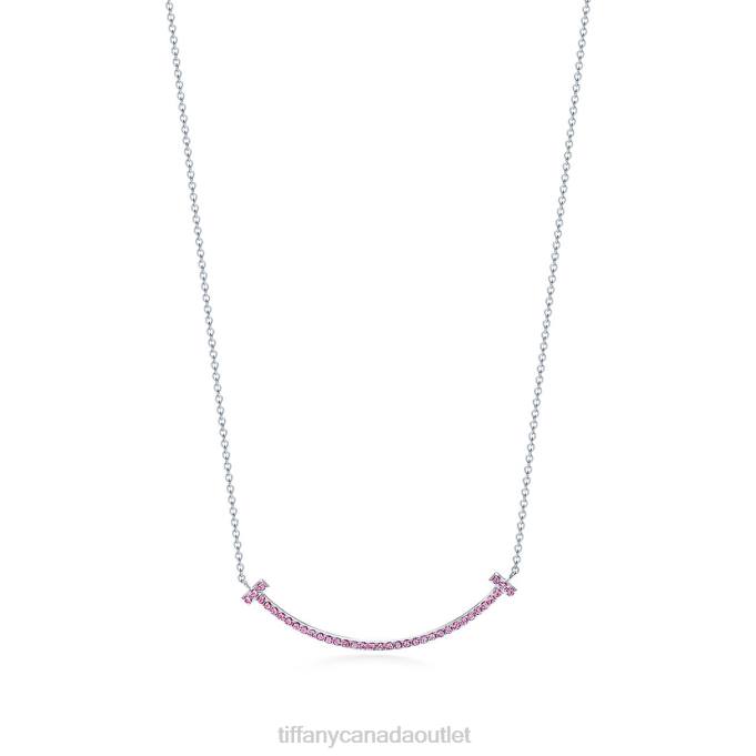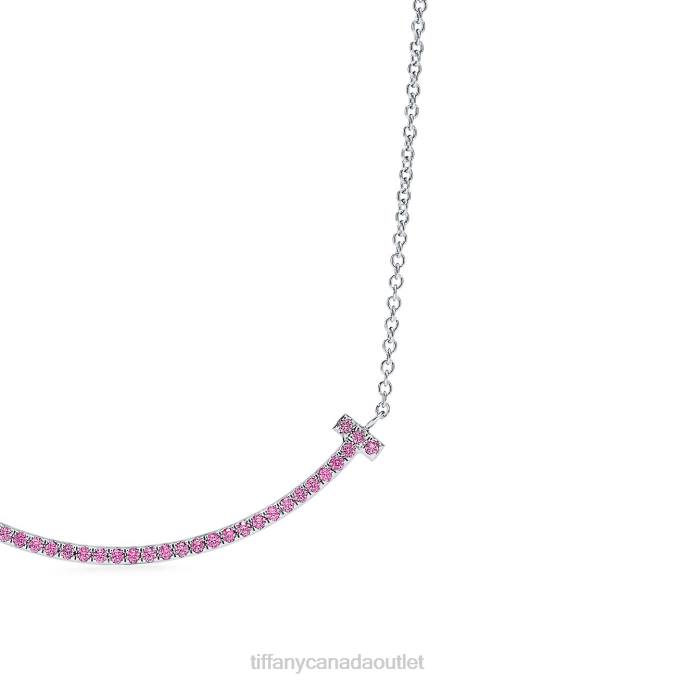 Tiffany T Smile Pendant In 18k White Gold With Pink Sapphires, Small.