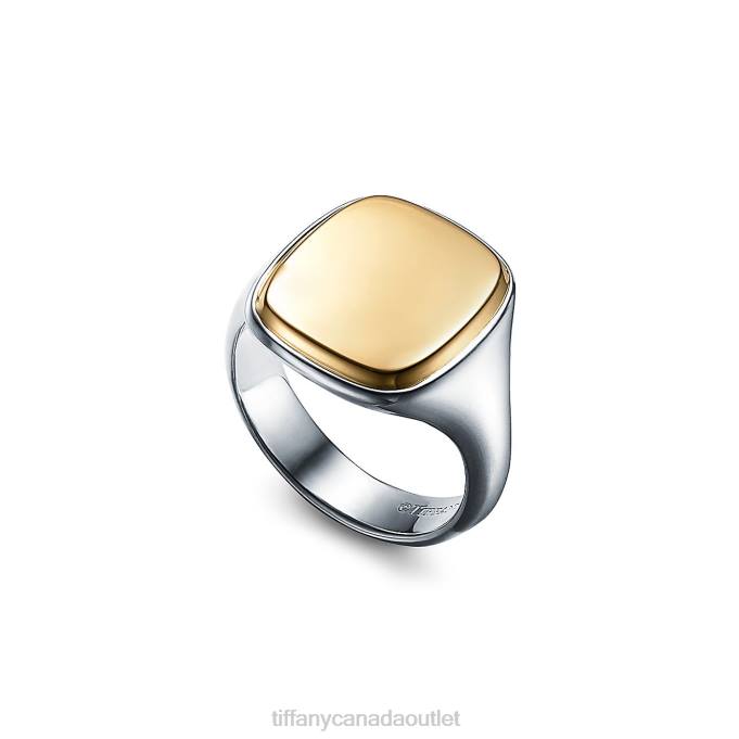 This Bold Signet Ring, Designed In 18k Gold And Sterling Silver, Features A Flat Top Perfect For Engraving. Style This Contemporary Ring On Its Own Or Mix And Match With Other Tiffany Jewelry.Note, Engraved Items Will Be Delivered After Father’s Day.