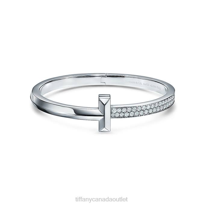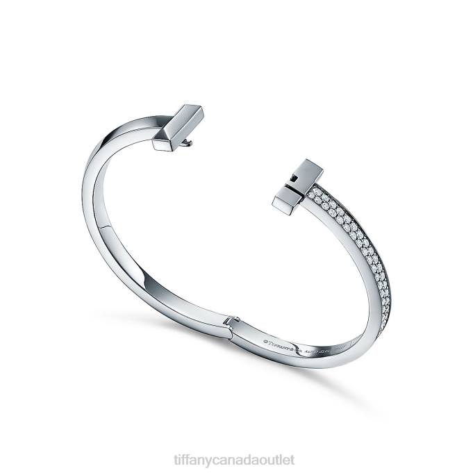 Tiffany T T1 Wide Diamond Hinged Bangle In 18k White Gold, Medium.