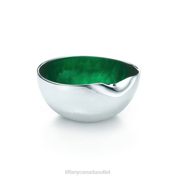 Elsa Peretti Thumbprint Bowl In Sterling Silver With Green Enamel Finish.