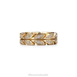 Tiffany Vine Band Ring Unisex 0J0F1494 Jewelry in Yellow Gold with Diamonds, 6 mm Wide