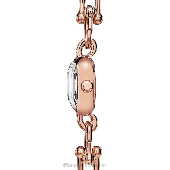 Tiffany HardWear Watches Are As Bold As They Are Refined. Handcrafted In Switzerland, Each Watch Features The Iconic Gauge Links And Brilliant Diamonds. This 18k Rose Gold Watch Features Pave Diamonds And A White Mother-of-pearl Dial. A Hidden Clasp Creates A Streamlined Design, While A Faceted Sapphire-glass Crystal Evokes The Unique Shape Of The Legendary Tiffany Diamond. It Makes A Beautiful Statement Worn On Its Own Or Layered With Tiffany HardWear Bracelets.