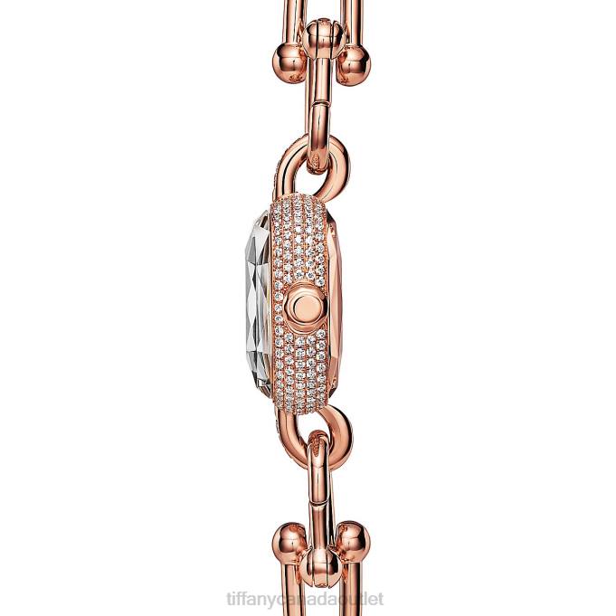Tiffany HardWear Watches Are As Bold As They Are Refined. Handcrafted In Switzerland, Each Watch Features The Iconic Gauge Links And Brilliant Diamonds. This 18k Rose Gold Watch Features Pave Diamonds And A Black Lacquer Dial. A Hidden Clasp Creates A Streamlined Design, While A Faceted Sapphire-glass Crystal Evokes The Unique Shape Of The Legendary Tiffany Diamond. It Makes A Beautiful Statement Worn On Its Own Or Layered With Tiffany HardWear Bracelets.