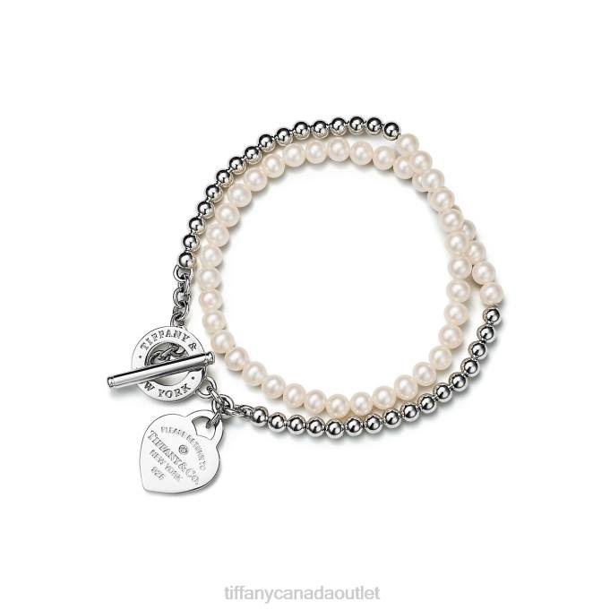 Tiffany Wrap Bead Bracelet Unisex 0J0F1005 Jewelry in Silver with Pearls and a Diamond, Small