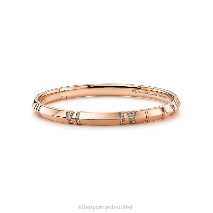 Tiffany X Closed Narrow Hinged Bangle Unisex 0J0F1119 Jewelry in Rose Gold with Diamonds