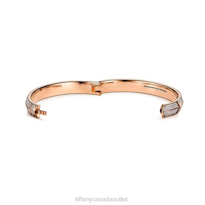 Tiffany X Closed Wide Hinged Bangle Unisex 0J0F1120 Jewelry in Rose Gold with Pave Diamonds