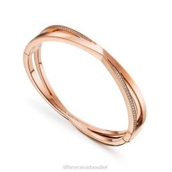 Tiffany X Closed Wide Hinged Bangle Unisex 0J0F1120 Jewelry in Rose Gold with Pave Diamonds