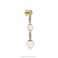 Tiffany Triple Drop Link Earrings Unisex 0J0F710 Jewelry in Yellow Gold with Freshwater Pearls