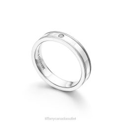 Tiffany Double Milgrain Band Ring Unisex 0J0F1858 Jewelry in Platinum with a Diamond, 4 mm Wide