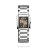 Women’s Watch In Stainless Steel. Ice Blue Dial Set With Round Brilliant Diamonds. Carat Total Weight .28. 24 Mm Case. Quartz Movement. Water Resistant To 30 Meters/100 Feet/3 ATM. Swiss-made.