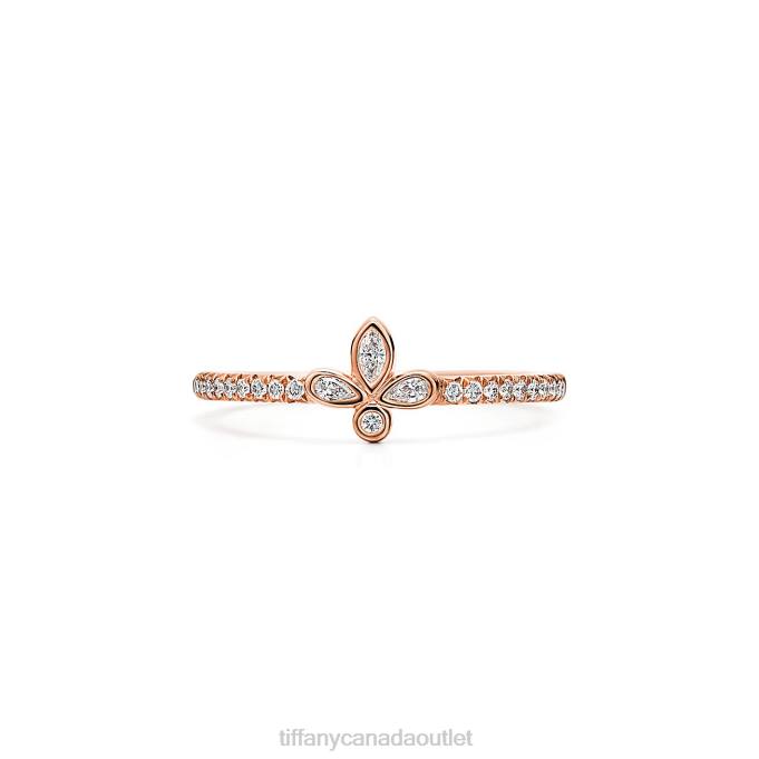 Tiffany Fleur De Lis Band Ring In 18k Rose Gold With Diamonds, Extra Mini.