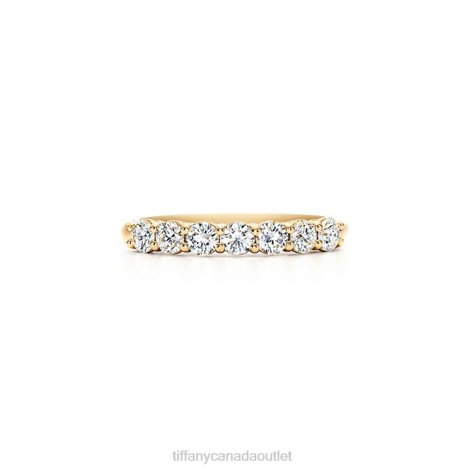 Tiffany Band Ring Unisex 0J0F1743 Jewelry in Yellow Gold with a Half-circle of Diamonds, 3 mm
