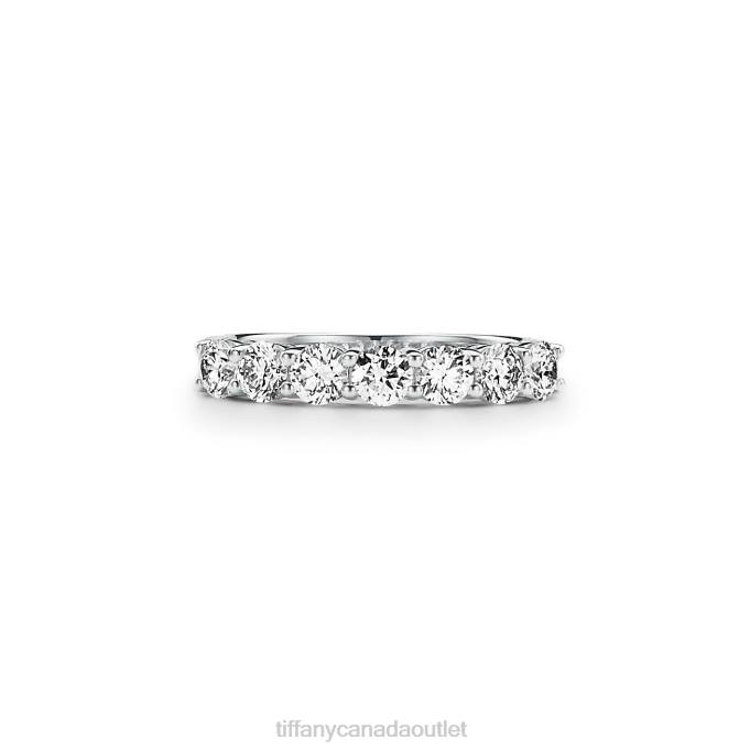 Tiffany Band Ring Unisex 0J0F1868 Jewelry in Platinum with a Half-circle of Diamonds, 3.5 mm