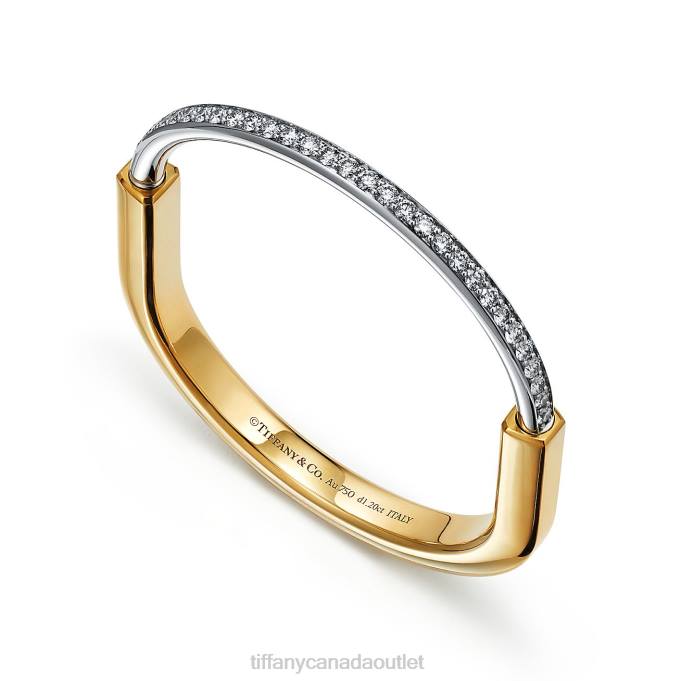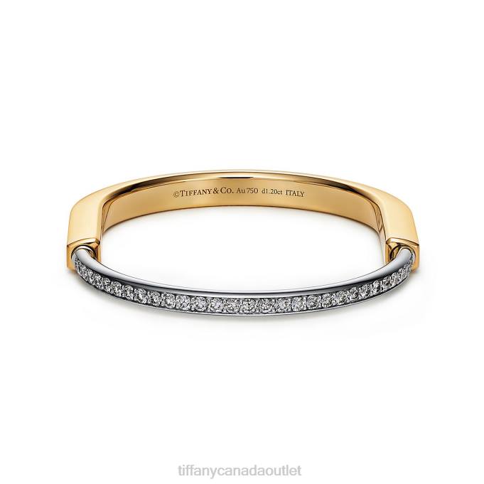 Tiffany Lock Bangle In Yellow And White Gold With Half Pave Diamonds