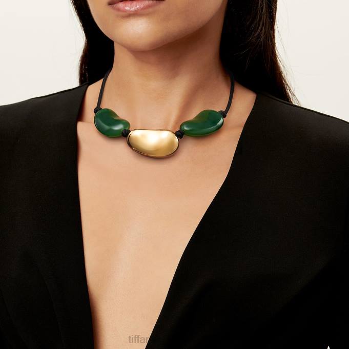 Elsa Peretti Bean Design Necklace In Yellow Gold With Green Jade, 29 X 50 Mm