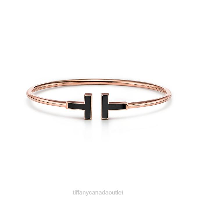 Tiffany T Black Onyx Wire Bracelet In 18k Rose Gold, Medium.