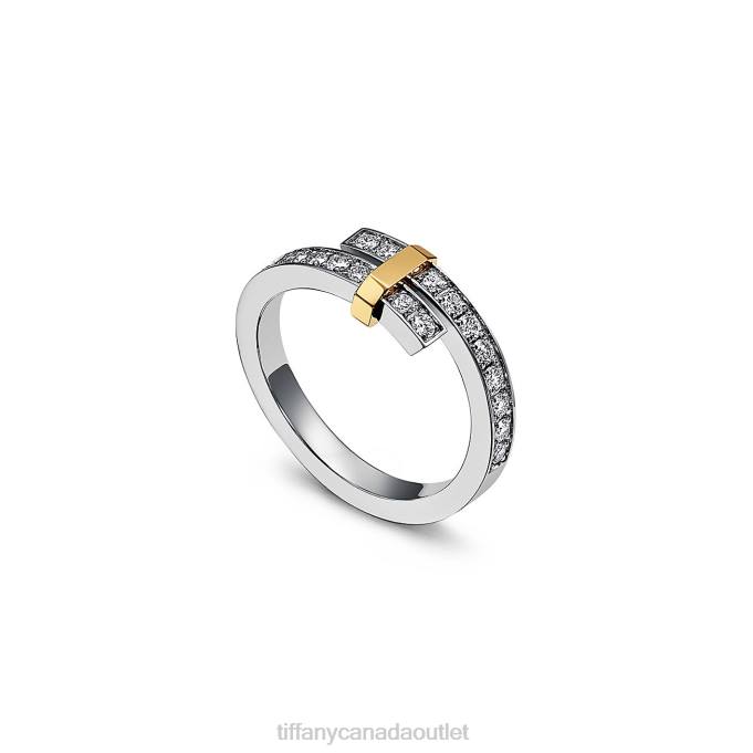 Tiffany Bypass Ring Unisex 0J0F1468 Jewelry in Platinum and Yellow Gold with Diamonds, Narrow