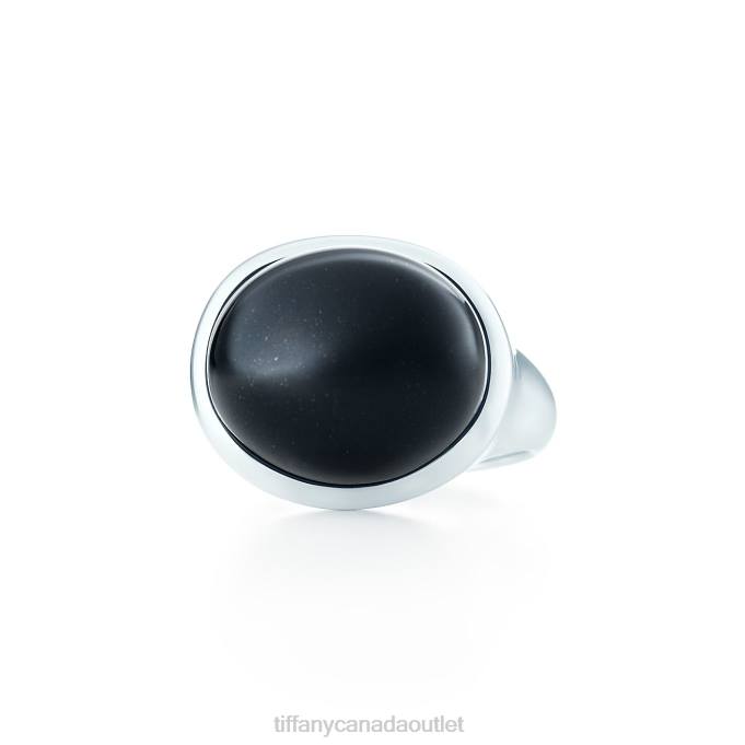 Elsa Peretti Cabochon Ring In Sterling Silver With Black Jade, 15.5 Mm Wide.
