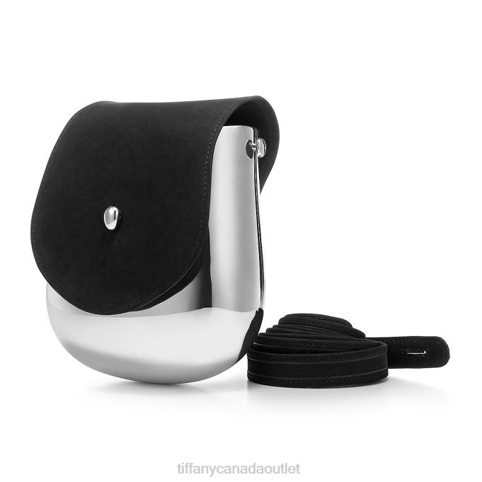 Elsa Peretti Campana Bag In Sterling Silver With Black Suede.