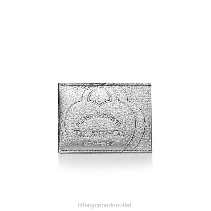 Return To Tiffany Card Case In Silver-colored Leather